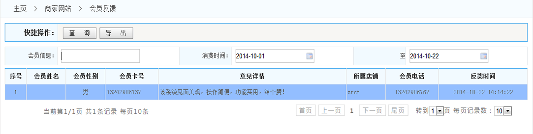2.導(dǎo)出:可以將按條件查詢出來的會員反饋列表 以Excel形式導(dǎo)出