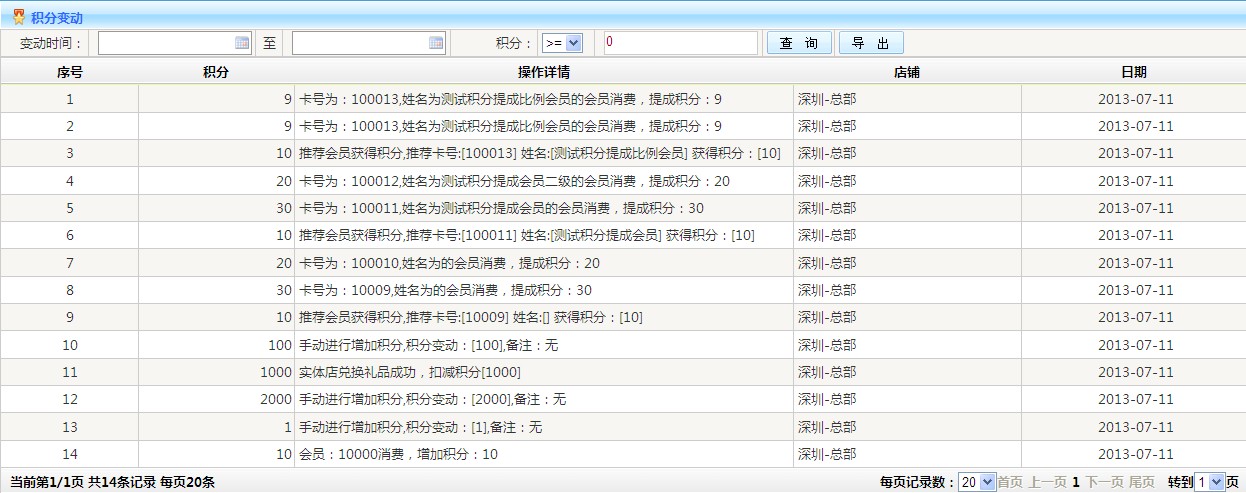 1.查詢:可以根據(jù)積分的數(shù)量 時間段等條件查詢