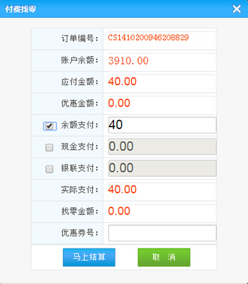 點擊結(jié)算按鈕,將彈出如下結(jié)算頁面